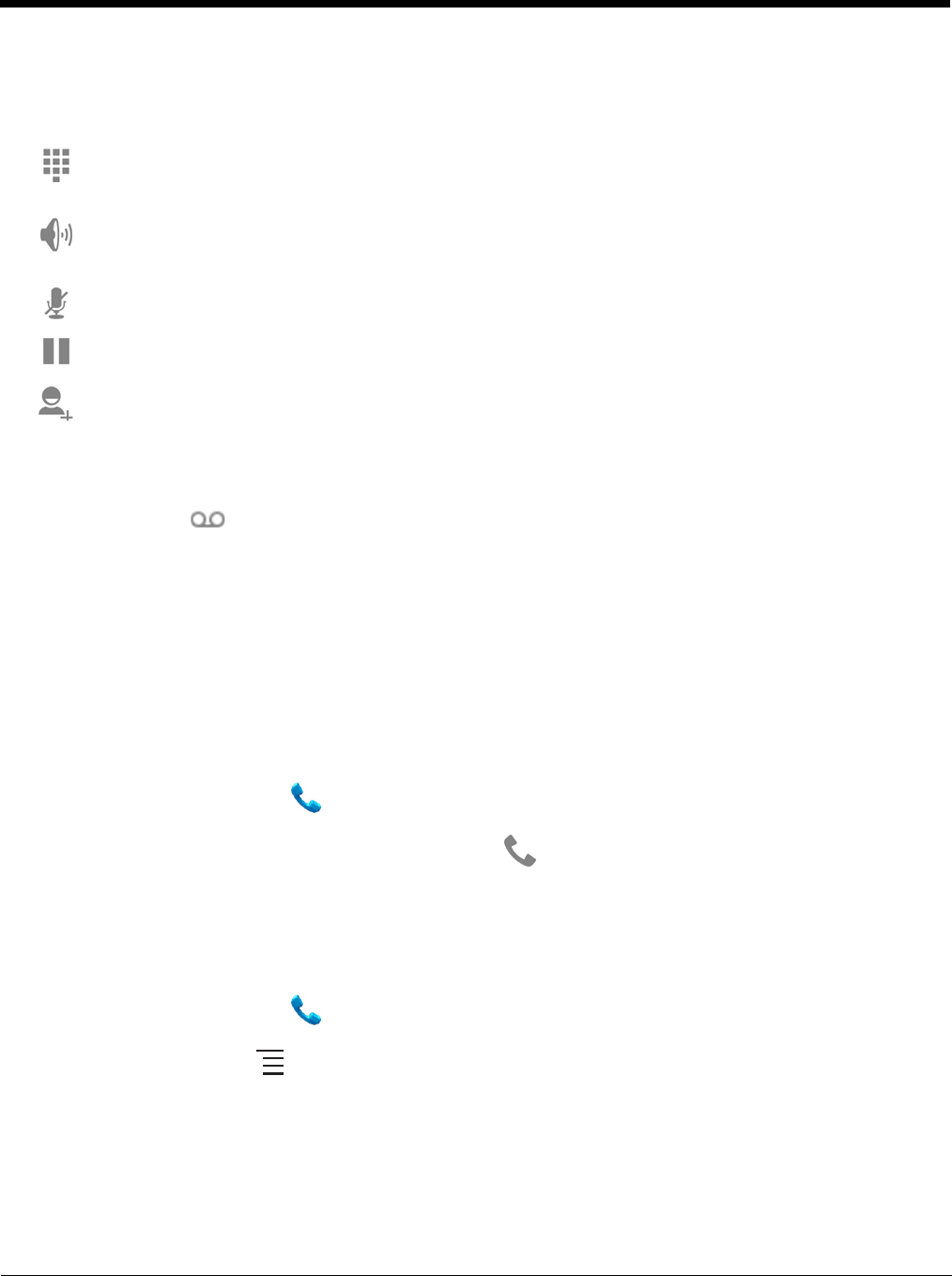 Once a phone call is in process, you can access to the following options by touching the relevant icon.
